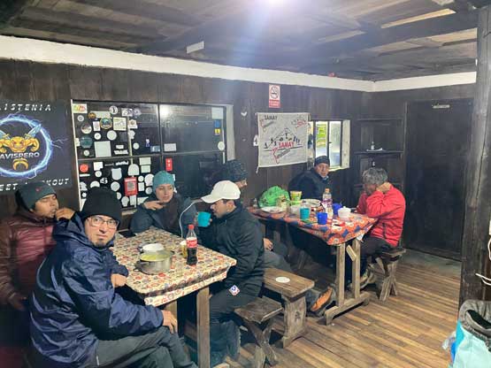 We had just over 1000 m ascent to the Refugio and the ascent was a rather no-brainer by simply following the well-defined trail. The trail was very steep at places but I liked that as we would gain elevation efficiently. There were “tree tunnels” on the lower zones that I had never seen before, as this was my first proper ascent in the jungles. Adam was actually the one leading in front to set a pace. About halfway up Francisco said that we should take a break but Adam and I didn’t feel the need to do that, so we went ahead. We made to the hut in under 2 hours from the trail-head and Francisco showed up 15 minutes later. It’s worth noting that we didn’t opt to hire a porter on this ascent so we carried all of our shits including the extra things that Francisco gave us. I had to use the BMG 105L backpack to fit them all in. It was a mistake to not bring a secondary sleeping bag in this trip. Using the -32C sleeping bag at such altitude where temperature would barely dip below freezing was too much of an overkill. Over the next few hours about 10 more climbers, all from Ecuador showed up and then it was the party time for New Year’s Eve. I might as well stay outside to make some new friends and it’s a good oppourtunity for me to practice Spanish. The Ecuadorians made a fire and burnt things to “let go the previous year” and I celebrated with them. Their decision was to start hiking by 2 am but Francisco decided for Adam and I, to wake up at 3 am. Francisco probably had noticed our speeds and determined there’s no need to start that early as we otherwise would be summitting in the dark again.