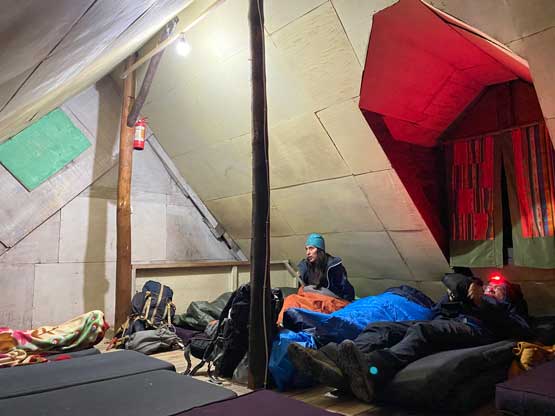 The other team was just about to start the final ascent towards the true summit when we decided to descend. Francisco then led us descending the SW Ridge to loop into the crater. I thought we wanted to bypass the other team to reduce rock fall hazards but we later learnt that Francisco wanted us to go inside the crater to check things out. Adam was against that but I was open. In the end Francisco and Adam descended back to the standard route while I did a solo detour into the crater to smell more sulphurs. After regrouping we busted down the trail like mad mans. Francisco and I mostly just ran down the dirt trails like scree skiing in the Rockies while Adam followed closely behind. I felt sorry for my brand new Trango Tech boots but whatever. The rest of the descent to the Refugio was rather uneventful and we got back in time for breakfast. The chef in the Refugio made us some massive meals and we requested some additional eggs for a bit of extra money. For the hike-out I opted to dash ahead while listening to music as it’s incredibly boring, but at least it wasn’t a long one. Our round trip time sans the time spent in the hut was 7.5 hours and considering the 2300 m elevation gain, the heavy packs and the altitude I think we did reasonably well.