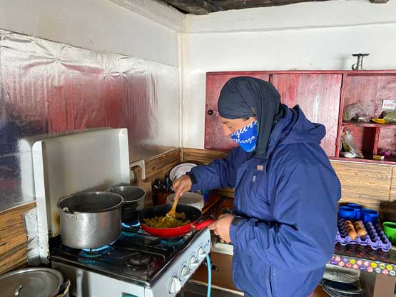A thunderstorm brew in overnight and we got some heavy downpours. It didn’t last too long, but when we woke up in the morning the peak, which was visible from our “home” was covered in fresh snow. Our guide informed us that ice axe and crampons weren’t needed but with the fresh snow I decided to carry crampons regardless. Adam had left his crampons in Quito but he had microspikes here. Getting picked up by the guide was the first crux of the day. The head person of Andean Summit Adventure, Elizabeth told us that the pick-up time would be 12:30 pm and we thought that’s a bit too late. The weather usually collapses in the afternoon and we didn’t want to do the approach in rain. Elizabeth eventually compromised our needs and changed the pick-up time to 11 am. The next challenge was for our guide Francisco to find our Air B&B. It seemed like his previous clients were all based in hotels so when we gave him the address instead of a hotel name he was confused. Francisco called Adam via What’s App and immediately spoke a bunch of Spanish that none of us could understand. Adam had to call Elizabeth (who speaks good English) to inform her the pick-up and communication difficulties and Francisco eventually showed up at around 11:30 am. Francisco actually spoke fine English but he assumed we would speak Spanish. This showed that Volcán Tungurahua isn’t a popular peak among foreigners. A separate driver showed up together with Francisco and drove the 4 of us to the park’s office near the trail-head, about 1000 vertical meters up. The road would require 4×4 on the upper reach but was overall not in a bad shape. We got there in about half an hour and had lunch that Franciso brought. The infrastructure wasn’t as civilized as on Chimborazo so we just ate the food inside the park’s office. It was drizzling lightly outside.
