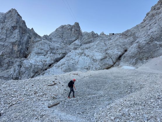 Vlad had paid for an expensive Airbnb with his family in the vicinity for about 700 dollars for 4 days. Adam and I would absolutely not pay for that, so we again went to search for the illegal camping options. This area was very tricky but I did manage to find one, off the beaten path on a dirt road heading up towards a restaurant or something. The restaurant was probably not in operation because we encountered absolutely no traffic during the night. We parked at one of the more convenient spots within 2 km from the start, and simply pitched the tents beside the vehicle, and had no issue with that. The alarms went off at 3:30 am and we would meet up with Vlad in Ehrwald an hour later. Vlad was late by 5 min due to an error in driving. We then followed Vlad’s lead driving to the lower (free) parking area to ditch Vlad’s car, and then all piled into our stinking garbage vehicle for the short ride to the upper trail-head. The piling required some smartness but we got that figured out. This is also the base of the gondola so Adam would sleep a few more hours in the vehicle to wait for the first ride of the day. This parking lot was not free but we took a chance by not paying, and did not get ourselves into trouble. Nobody would be there ticketing in the early morning of a weekday.