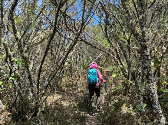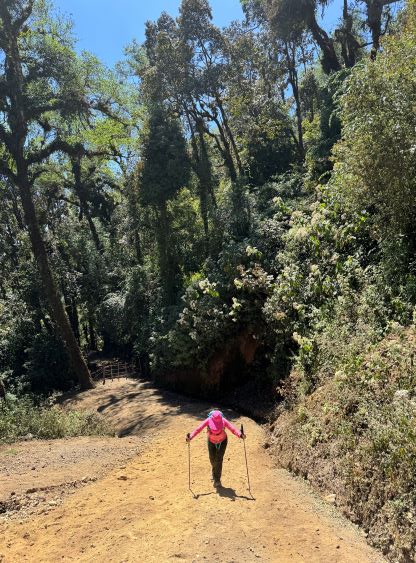 The ascent was not as no-brainer as I thought, but was definitely “nothing” compared to the driving adventure that we just did. The first third of the way was to plod up the uber steep road to a village at 2850 m elevation. There are multiple ways to go through this village and we took a different way than our reference GPX tracks recorded by Rob Woodall and Greg Slayden. Firmin helped us to push through two gates and it was obvious that we walked through some farm lands. On the return we followed Greg’s GPX which was also slightly shorter. We found the trail leaving the road at just under 3050 m elevation and Firmin confirmed the correctness of this trail. Firmin had been working very hard to keep up with us, even though I was only using at most 50% of my normal speed. I made sure to hike as slow as possible to give ourselves more time to acclimatize, and I was definitely not anticipating our guide to not be able to keep up with this pace. I was actually slightly worried about the guide being “too fast” as the guide lives at 1900 m elevation and certainly would not need to do any acclimatization for these peaks. I thought about to take off ahead, but the weather was not a problem, and the longer we spent at the higher elevation the better acclimatization we would get, so I gave in. Kate and I eventually did take off and made the summit about 20 minutes earlier. We used that time to explore the true summit which was actually behind a communication tower. The guide did eventually show up but of course did not go to the highest point. I don’t know if he, or his other clients had ever been to the true summit.