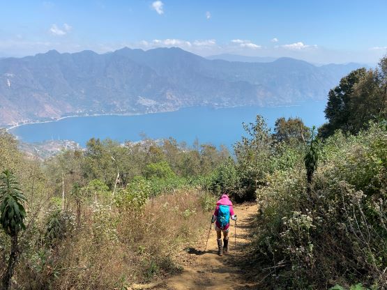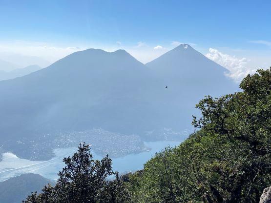 I had considered to skip that trail-end viewpoint because to get there required another 150 m elevation gain. We were already tired and we had two big volcanoes to climb on the following two days, but I still made us to go for the viewpoint for completion purposes. To be fair I didn’t care that much about the views, but I have to admit that the views made this detour worthwhile. We had missed out seeing Lake Atitlán from the top of Volcán Atitlán but we managed to get those views from this peak. While taking pictures a lone German dude showed up and we had a brief chat about the safety issues. This guy had paid the entrance fee and got the “beta” from the policemen that the last recorded robbery event was in June 2023, almost a year ago. I thought there’d be at least one robbery incident per month given the reviews that I had seen, but maybe the situation had improved in the recent time. We met a few more hikers (all foreigners) on the descent and they all asked me “is it safe up there” so everyone knew the problems. While descending we did encounter a group of locals with machetes so I tucked the iPhones and slowly walked into them, but it was apparent that those were working on the trail. We also did not encounter those aggressive dogs probably because it was now in daylight time. I think we showed up too early for the dogs (in the dark with head-lamps on). Upon returning to the trail-head the registration office wanted us to pay, but we refused as there had been no services in guiding us through the dogs zone. That German guy said that the policemen had walked him through the initial few hundred meters. I was trying hard to make the argument in broken Spanish and they eventually gave in. We saved 200Q, and then spent the next few hours driving to Antigua to locate ourselves for the last two objectives.