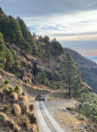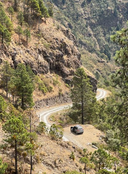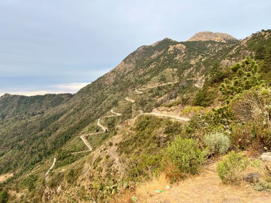 In any case Kate and I, together with the driver spent the previous night in Hotel Villa Real not far from the base of Volcán Tajumulco at over 3000 m elevation. The hotel was very basic with no wifi nor reliable hot water showers, but the higher elevation did give us additional acclimatization. We left the hotel at 6 am again in the morning and I directed Oswaldo to the start of the steep access road, losing 400 m elevation down to the village of San Sebastián. The direction given by Google Map along with the Gaia GPS app was all we needed to navigate this access road, and for once, the Google’s direction worked out nicely in a foreign country. I was surprised by the “lack of steepness” compared to what we had done on Montañas Peña Blanca a few days prior. The entire drive-up took less than half an hour, including a stop on the upper portion of the road for photos. The road reaches the highest point at 3570 m before making a steep descent to a small village with no other outlet, losing close to 1500 m elevation. I have to admit that the engineering of this road itself was more interesting than the peak we were going to climb, as we could see that entire descent down into the other village was also paved with two tracks. I directed Oswaldo to park at the highest point, and we would locate the trail-head slightly south of the small pull-out. I anticipated the round trip to take no more than 4 hours so Oswaldo should attempt to sleep in the vehicle while waiting for our return.