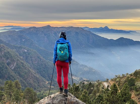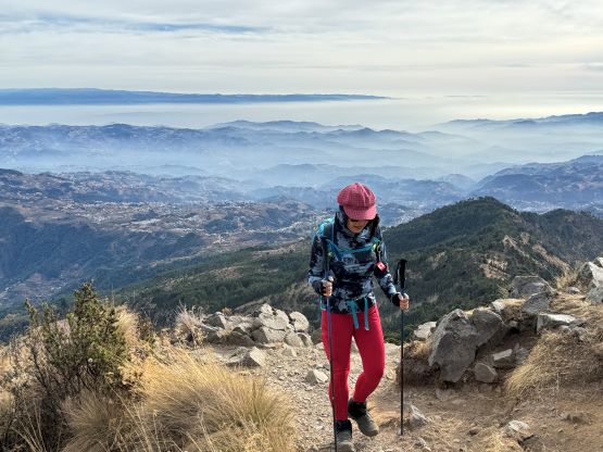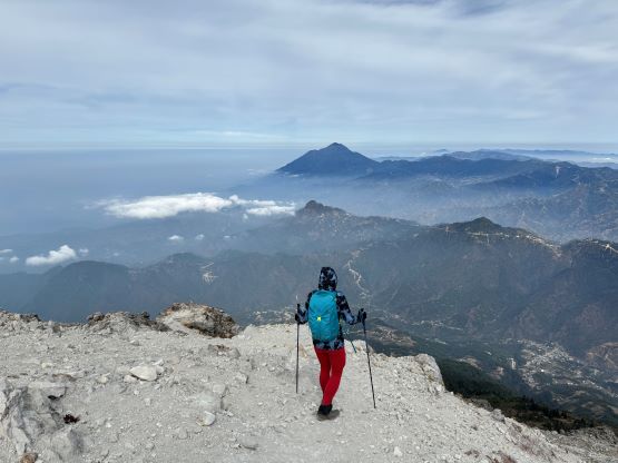 Kate now on the summit of Cerro Concepción with Volcán Tajumulco behind