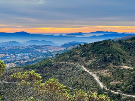 Morning horizon with the road we took in the foreground