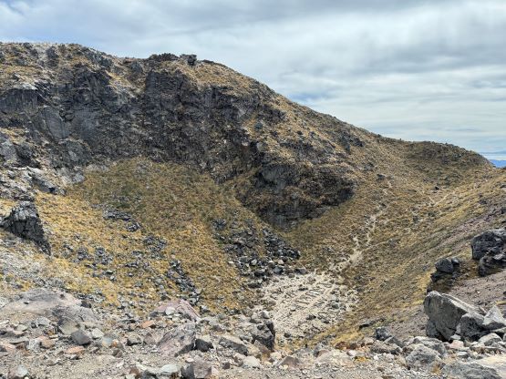 The inside of the crater, with the true summit behind