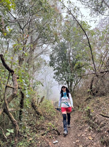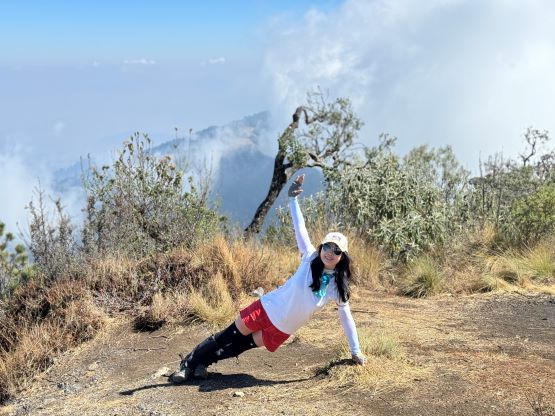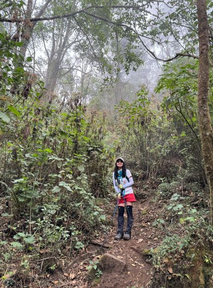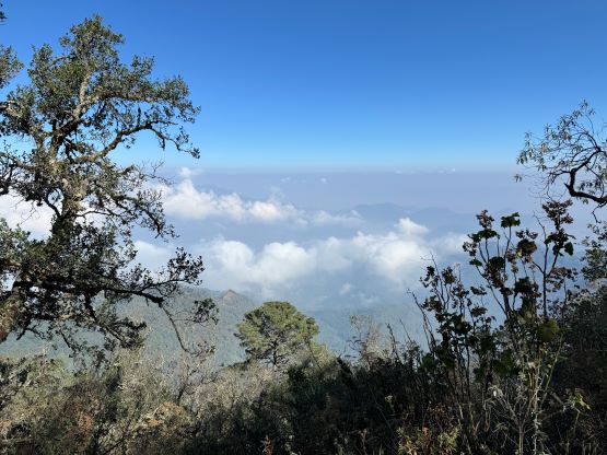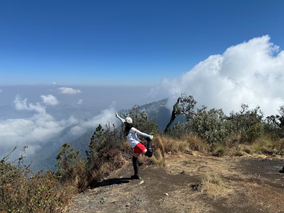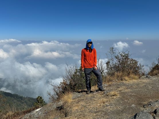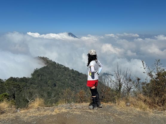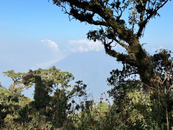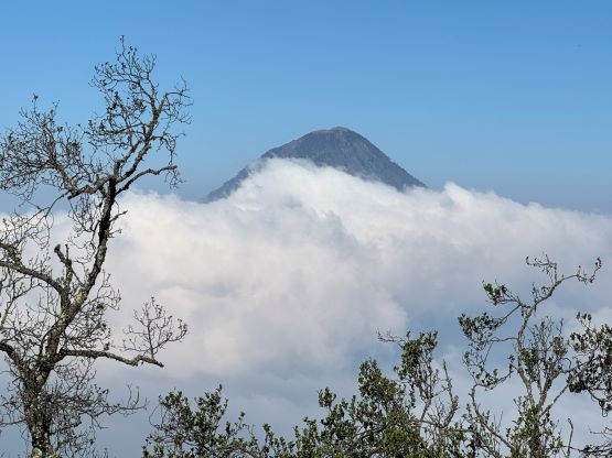 It turned out that the 2 or 3 km to the 2930-m saddle joining the standard route was entirely on the remnant of this road, but only the first kilometer or so could have been driven. The rest of the road had disintegrated that one would need an ATV or a dirt bike to negotiate. There were unfortunately a shit ton of garbage and that had attracted a lot of flies that quickly became annoying. I also worried about the safety issues as this “road” was more like a trash dump, but I doubted if we would end up seeing anyone here. The road had narrowed down to a singletrack trail not far after joining the standard route and the trail to the Zunil/Santo Tomás saddle was quite undulating. Not doing much lingering at the saddle we turned left. The trail to Volcán Zunil was mostly well-engineered except for one steep and sandy section that required caution. The grade gradually eased off and we were eventually traversing 1-2 km of flat ground across the north slopes of our objective. I took a break while waiting for Kate to catch up, and meanwhile encountered a large group descending after spending the night on the summit. That turned out to be the only human being we saw on this outing. The trail brought us to the east side of the summit block and the final attack was a bit steep but uneventful. There had been some thick cloud coverages but the summit was tall enough to poke above the clouds, granting some views.