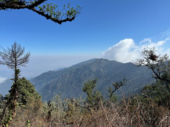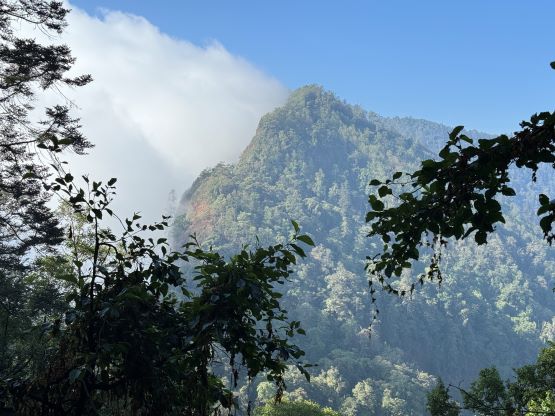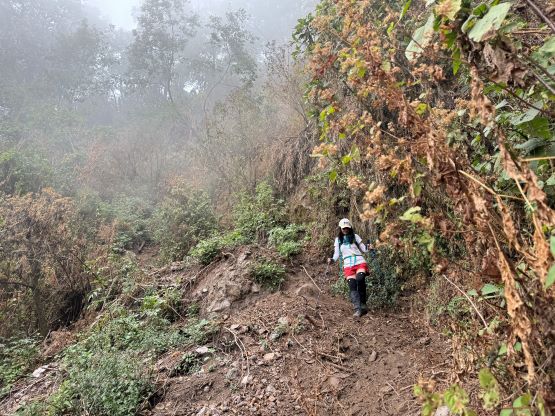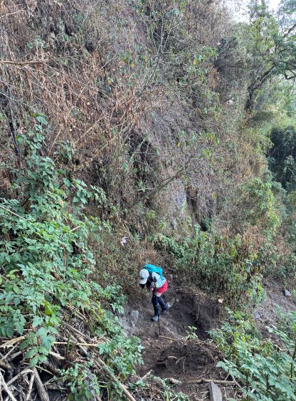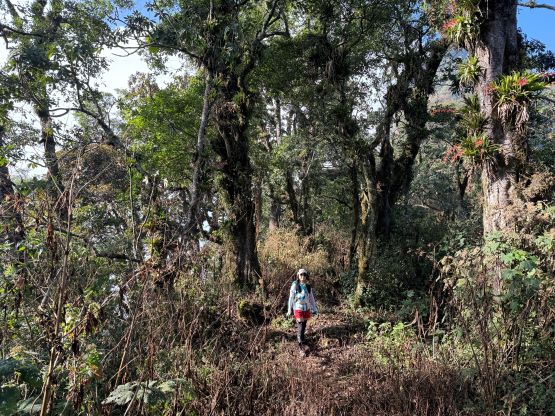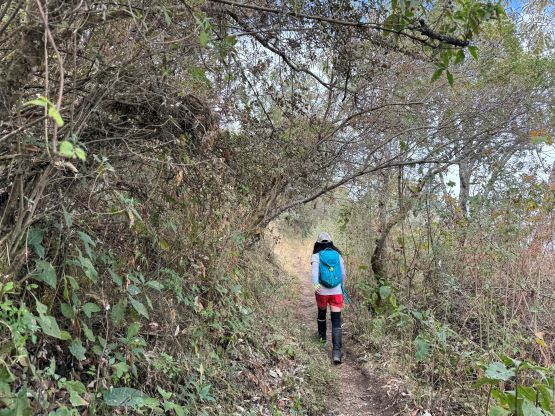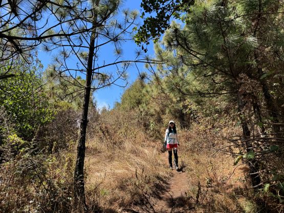 Oswaldo came to pick us up from the hotel in Xela at 6 am in the morning as usual, and the drive to the small village of Tzumucabal took about 40 minutes. Up to this point our route shares the same driving direction as the standard Fuentes Georginas route, but then we would turn left at the village onto some narrow and rough dirt roads. These roads were not a surprise to me, as that reference article mentioned the need of a serious 4-wheel-drive vehicle. After about a kilometer of crawling we did also have to switch to 4-Low but thankfully the condition stayed more or less the same for the whole way up. We encountered one farmer on his way down, and that gave us the assurance that the road would go. To my surprise we were able to drive past the road’s end onto what was shown as a “trail” on the Gaia map, and this got us successfully bypassed a farming house with a troublesome dog. That dog was chasing our vehicle as we drove past it, that I would definitely not be stoked to encounter it while on foot. Eventually at 2700 m elevation we came across a large area with good turning-around. We could have driven for at least 1 km further, but I made Oswaldo to stop. At this point we had already surpassed the “best case scenario” so I was more than happy enough to start walking.