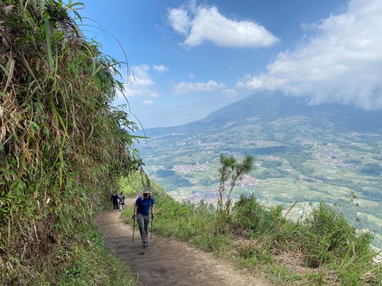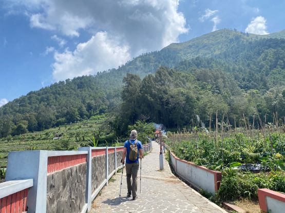 Gunung Andong only boasts 400 m prominence but is actually a very popular objective among the locals. Adam noticed it while browsing the maps. I wasn’t keen initially, but after seeing this little bump from the summit of Merbabu earlier in the day I instantly decided to do it afterwards. The elevation gain would be close to 450 m which was a bit more than ideal for a bonus objective, but we had time, so why not. My main point was that we had two “rest days” afterwards so there’s absolutely no need to reserve energy on this day. I gave the trail-head location to the driver and he negotiated some narrow and winding roads. Within an hour after leaving Selo we were there. Unfortunately there wasn’t anywhere to park the vehicle so he would drive a little ways back and wait for us in the town.