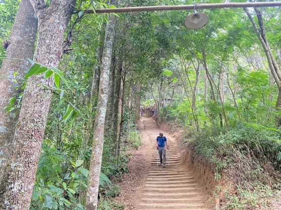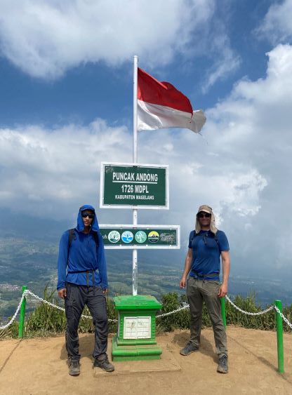 There’s actually a “basecamp” and a gate for this little objective and they charged us 40,000 IDR which was a little bit ridiculous, considering we only paid 10,000 IDR for Gn. Merbabu earlier in the day. We paid them nonetheless because this price was overall “nothing” by North American standard. There are actually a few routes to the summit but we were only interested in the shortest way. The trail was mostly made of staircases. The lowest section was actually made of concrete staircases but the upper route was a little bit softer. There were hordes of hikers and most of them were women, and I wondered why. We passed a total of 3 or 4 Pos/camps before reaching the summit ridge, and the true summit was actually a ways away. We were both exhausted but still made the summit in 37 minutes after leaving the vehicle, without doing any break along the way.