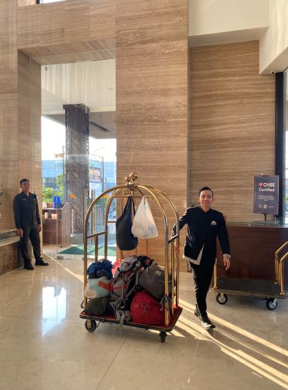 We spent about 5 minutes on the summit to take some pictures. The clouds were engulfing in, so there weren’t that much to see. We opted to take our time on the descent to save the knees but still made down in a timely manner. A lot of the other hikers were looking us in the way as if we were funny. Some of them were able to speak English, and they couldn’t believe we just did Merbabu in the morning. Most of these people would camp on Andong and do this little peak over 2 or 3 days… Our driver then helped us to find a local warung for a well-deserved lunch, and then we drove northwards into the city of Semarang. Adam had booked an expensive hotel for 3 nights, but I would only spend the first night there as I needed a side trip to Singapore afterwards to break the stupid 30-day visa limit.