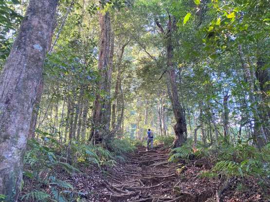 Gus came in the early morning as promised and he even arrived half an hour earlier because he worried about the traffics in the downtown area. The worrisome turned out to be unnecessary at this time of a day. Adam and I made him to wait for half an hour nonetheless because we weren’t planning to be ready at 4:30 am. We then picked up Devi and drove 2 hours to the trail-head on the west side of Batukaru. I was glad to hear that we’d be ascending this peak from the shortest side. There’s an entrance fee to pay at the trail-head and a ranger was already there. Again I had been “warned” multiple times about the official closure of Bali’s 22 mountains but the fact a ranger was there collecting our entrance fees suggested the abcense of enforcement, at least for the moment. That’s another reason to do Batukaru in this trip. This peak is at risk of becoming permanently illegal in the near future.