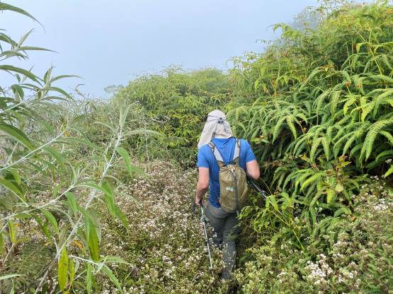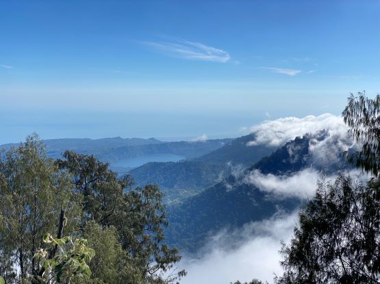The forested hill of Gunung Batukaru isn’t attractive from tourism perspective but is the second most prominent peak on Bali, and because of that Adam and I had to bag it. Apparently the locals do ascend this peak on a regular basis, and there are several trails on different sides of the mountain. I found the guide (Devi) through recommendation and Devi found a faster guide (Gus) for us. I mentioned specifically that we’d be hiking on a faster pace so Devi assigned us a secondary guide. Both of them would be accompanying us on the ascent but we only needed to pay for one guide’s fee. The package included the pick-up from our hotel in Conggu area and we extended the contract to including the drop-off at the ferry crossing on the far western side of Bali, by paying some extra fee. Batukaru was not one of the must-do objectives on on the original agenda, but this turned out to be a great deal as we managed to squeeze it into a travelling day. Earlier in this trip we had ascended Rinjani and Agung.