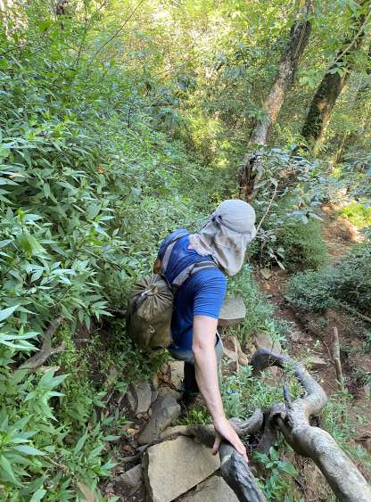 Devi assured that the entire hike would be done in the forest so there’s no need to don sunscreen nor to worry about the heat, and she was correct. The beginning of this trail was easy, but the grade picked up in no time. This turned out to be an even-steeper trail than the one we just did on Agung, with lots of high-steps required on tree roots. The grade was unrelenting and some sections even required scrambling moves. Higher up we passed several “Pos” (or rest stations) and after the last “Pos” the trail became brushy and overgrown. The final push onto the summit was longer than I thought mostly due to the deteriorating trail conditions, and also because of the 1100-m elevation gain. Both of us were anticipating a “rest day objective” but I guess there’s no such thing in Indonesia. All of the prominent peaks here require massive amount of work. Adam was high on energy and arrived in 1 hour 45 minutes. I arrived 12 minutes later and Gus arrived another 10 minutes. Devi had decided to take her time and just meet us on the descent.