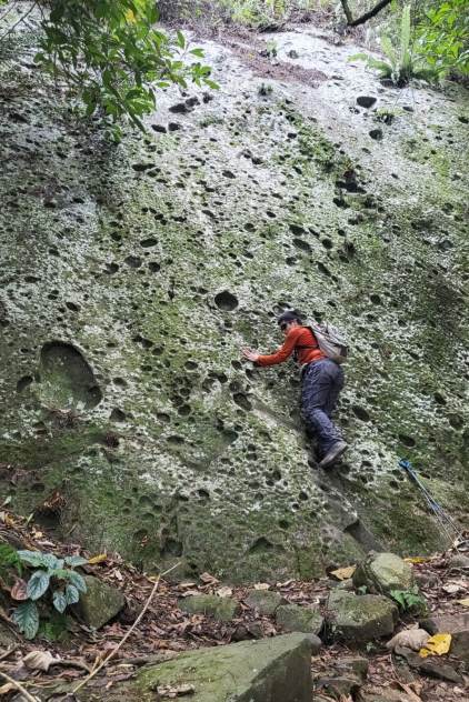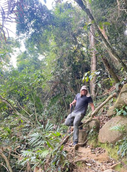 We only had about 350 m elevation gain over 1 km distance to reach the summit, so I anticipated a “giver”. This turned out to be more involved than I thought, but it’s still an easy ascent after all. Adam opted to not even bring his backpack. The crux of this ascent was the heat, as we were now in the afternoon and the elevation of this mountain is under 1000 m. We were both drenched from the sweats but thankfully at least half of the route was in the shades. There were also enough varieties to keep us entertained, and the route felt more like in Squamish than in Indonesia. The true summit of Gn. Bongkok is a short 3rd class scramble on a large boulder and was very fun. The view towards Gn. Parang is extremely impressive and we soon learnt that most, if not all climbers including the via-ferrata climbers do not ascend the true summit of that peak. The true summit might actually be a dauntingly difficult climb that does not have much “beta” available. Our driver knows a direct (not the easiest) route but it’s apparently a 5.11 climb.