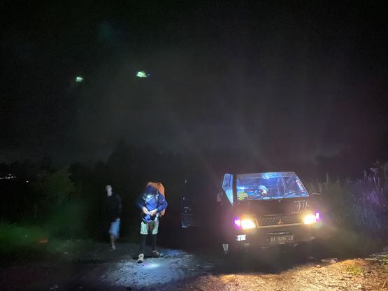The previous day was spent travelling. Adam and I boarded the Jakarta-Padang flight in the early morning and arrived at Padang, the capital of West Sumatra at 9:30 am. The driver was already there to pick us up, and we spent the next 6 hours driving southwards to Kerinci View, our homestay at the base of the mountain. The driving distance wasn’t outrageous but the roads were winding and narrow. It’s the typical Indonesian road that could hardly be driven faster than 40-50 km/h. We also did a few stops for food and grocery. Rapani, the owner and the head guide welcomed our arrival. We explained some of our needs and concerns during the briefing and Rapani was able to work things around. I was thinking to make the summit on the first day, so we wouldn’t want to start hiking at 9 am as per the “normal way”. I requested a departure time at 4 am and he agreed without even arguing. We also explained that the “red tape” was the sole reason for us to hire a guide so after passing the gate we would take off, make the summit on our own and regroup with the guide and porter at the camp, and Rapani agreed as well. The breakfast was served at 3:30 am. We carried their box lunch and 3 L of water each as with this new plan we had to bring all the food and gears to make the summit on our own. I was not anticipating a full day of rain so I was underdressed, but it’s fine in the end. The drive to the trail-head required a 4×4 vehicle so we all piled into a pick-up truck, and arrived in half an hour.
