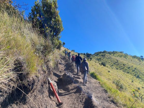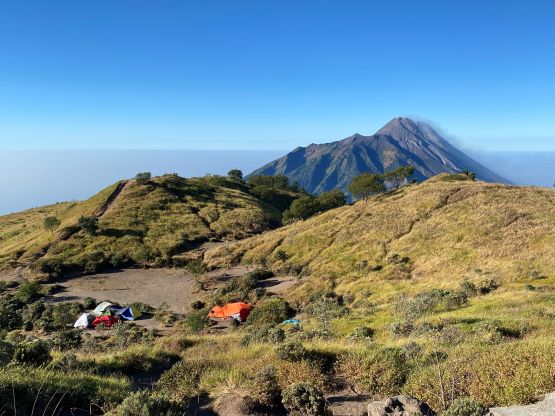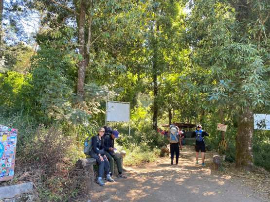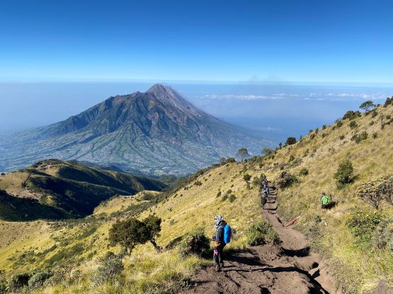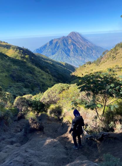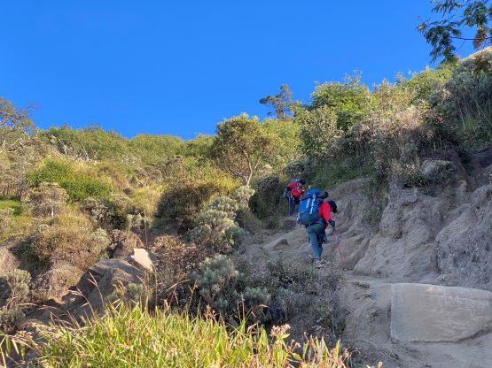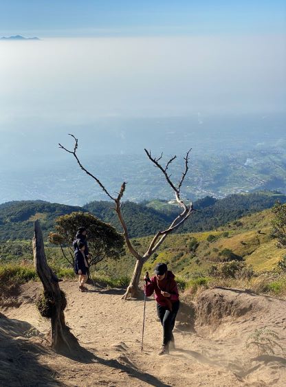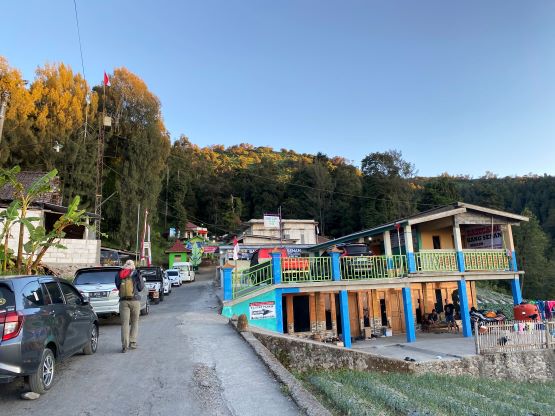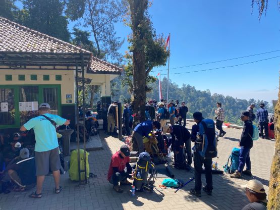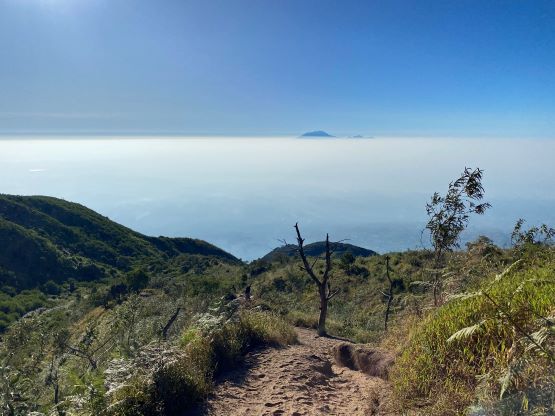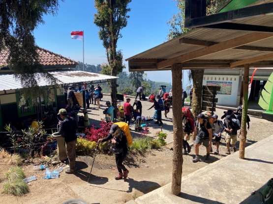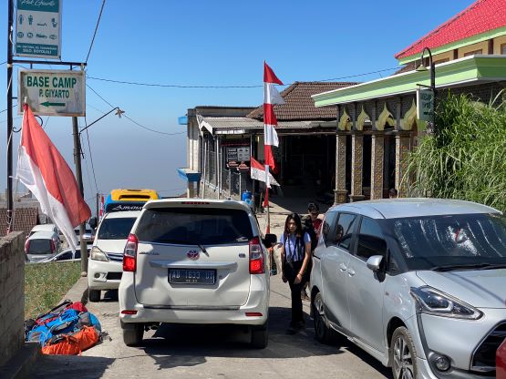 Our driver came to pick us up at 5 am and within an hour we made to the steep, narrow and winding roads past Selo. I thought we might have to get off the vehicle to hire some ojeks but our driver was skillful. This was definitely a sketchy road with so many blind corners and stretches that could be difficult, if not impossible to pass oncoming traffics. This was also a Saturday so hundreds, if not thousands of hikers would be going up, albeit a few hours behind our schedule, so the parking situation would only become worse later in the day. We had to park a few hundred (horizontal) meters below the drivable end, but that’s fine. There was of course a gate, with two guys making some firm statements that we needed to fill in an online form. I was very confused but we soon realized the issues. There’s a quota system regarding camping on this mountain but we were not going to camp at all, so they only charged our parking fee and let us in. The process was a bit stressful but the result was very positive. There were at least two more check points not far from the trail-head, but nobody’s working at 6 am, so we did not pay any additional fee nor did that stupid blood pressure test.
