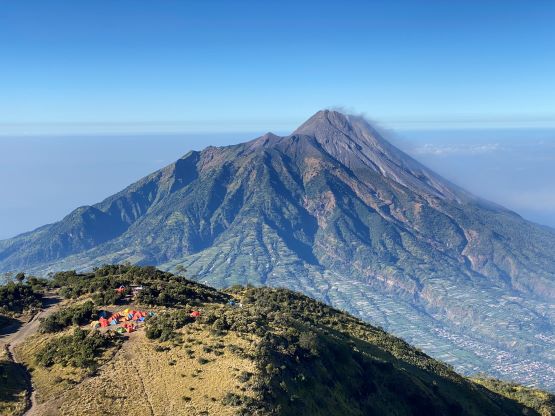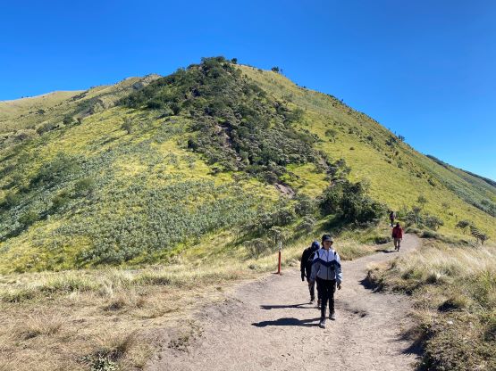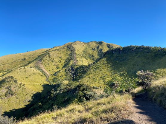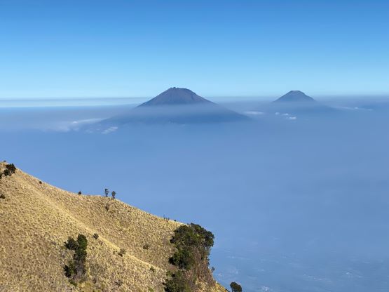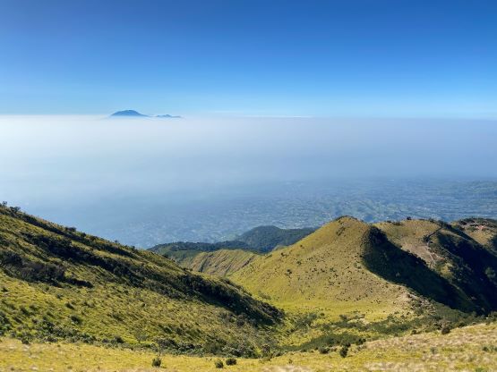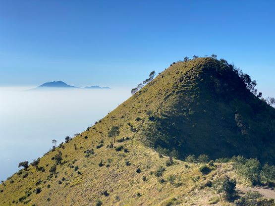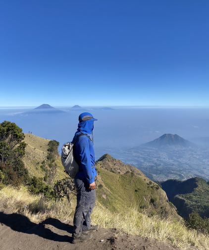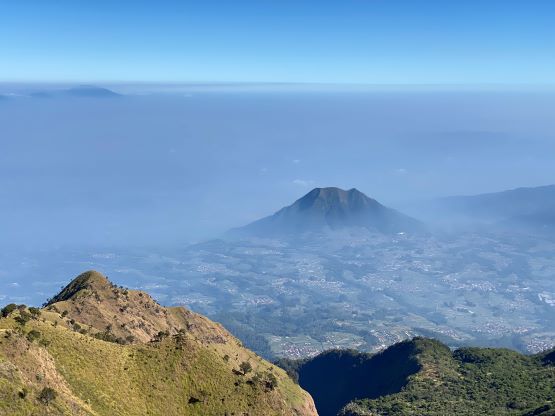 I was the only person on the summit not wearing a jacket so needless to say, I had to go down to keep myself warm. Adam was about 20 minutes behind and was still grunting up that final steep slope, and I said we would regroup at the trail-head. I then made a single dash all the way down without stopping, and I jogged all of the dusty stretches as that’s the only way to outrun the dusts. I passed hordes and hordes of hikers and campers from camp 1 down to the trail-head, and hundreds more were still at the bottom doing this or that. I then realized that this was a Saturday. I wouldn’t be surprised if 300 people would be gathering on the summit on the following morning for sunrise, but I guess that’s typical for a popular objective in Java. All of those check-points were active now, and some were there doing that blood pressure test. I was glad we didn’t have to do that to prove we were “healthy enough” to do this objective. My round trip time was 4 hours 15 minutes. Our driver and vehicle was not at the same place, but I found him about 100 m down the street. Adam showed up about half an hour later and we immediately drove towards the next objective, Gunung Andong. I wasn’t extremely keen about that add-on, but we were doing great on time so why not.