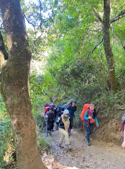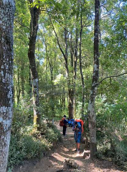 Passing the highest camp I briefly entered back into the forest for about 5 minutes. I finally got a brief break from the winds and the dusts, but then the final 300 m grunt onto the summit was bad. The dusts were actually mostly made by other hikers but given the popularity of this objective there’s no other way around. My strategy was to dash up as fast as I could do, and hopefully able to outrun the dusts. I did have to take several rest stops but otherwise I made the entire ascent in 2.5 hours without taking any break. The summit was cold thank to the wind, but I was able to stay for about 20 minutes to soak in the views. I was able to see the two peaks that we just did the day before, as well as the little bonus objective that we would do later in the day.