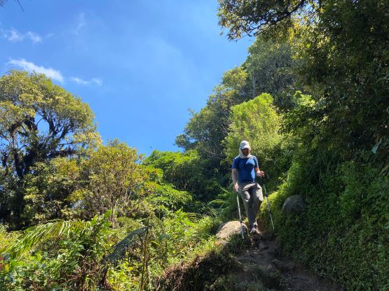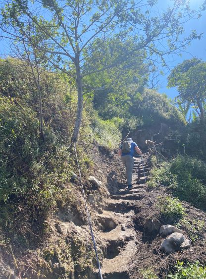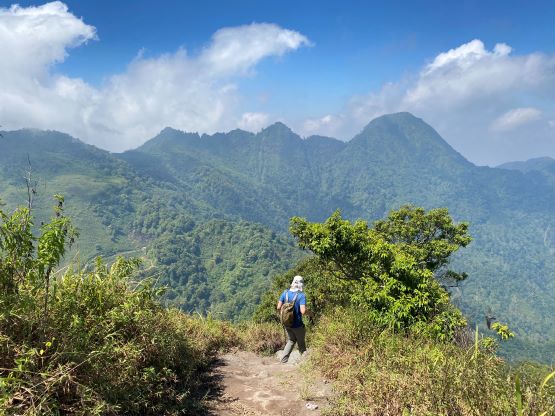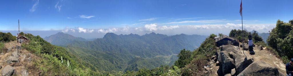 The ascent was a little bit more involved than I thought. The temperature was hot and the humidity was brutal, that we both felt the lack of energy. We were very glad that we did not hike up from the bottom. The trail was also narrow and somewhat exposed at places. There were fixed lines and handrails but those were very sketchy looking. It was definitely safer to use our own hands and feet even though it might be slower this way. We eventually topped out the summit ridge and traversed easily to the true summit. There was a lot of structures on the summit area including a temple and a warung. The warung would be excellent but it wasn’t open. I’ve read elsewhere that Gn. Muria is a very popular objective among the locals but we only encountered one hiker and that’s it.