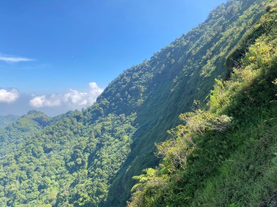 The ascent was a little bit more involved than I thought. The temperature was hot and the humidity was brutal, that we both felt the lack of energy. We were very glad that we did not hike up from the bottom. The trail was also narrow and somewhat exposed at places. There were fixed lines and handrails but those were very sketchy looking. It was definitely safer to use our own hands and feet even though it might be slower this way. We eventually topped out the summit ridge and traversed easily to the true summit. There was a lot of structures on the summit area including a temple and a warung. The warung would be excellent but it wasn’t open. I’ve read elsewhere that Gn. Muria is a very popular objective among the locals but we only encountered one hiker and that’s it.