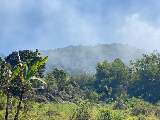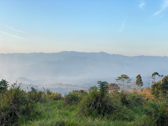 We took one more break at the viewpoint and then dashed all the way down to the trail-head in a single shot. The wind direction had changed that now we were directly attacked by the smokes from that garbage dump. The smell was horrible but I did not bring a mask so there’s nothing I could do. I soon found that the driver was not waiting for us at the trail-head but I found him a short ways down the road at the registration post. The registration was closed when we got here at 6 am, so we paid our belated fees and moved on. We made the spontaneous decision to grab Gunung Bongkok because we had enough time.