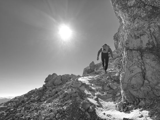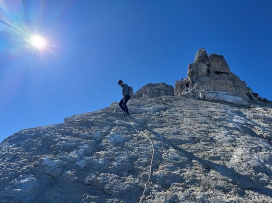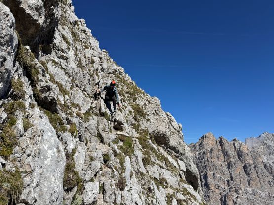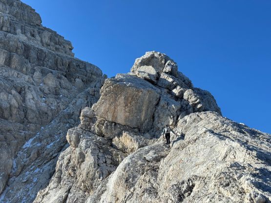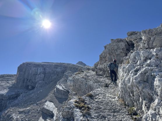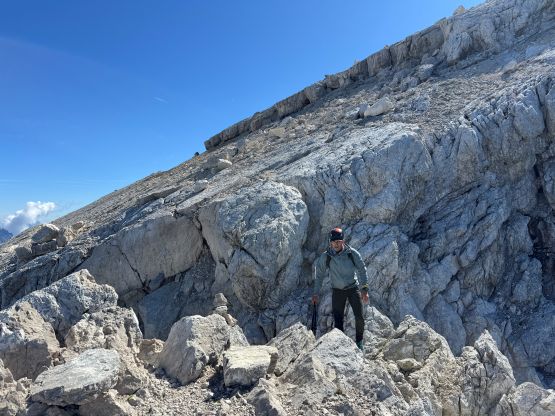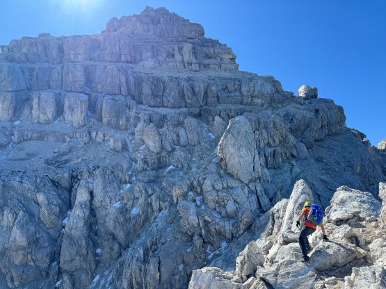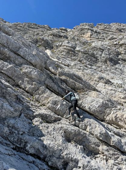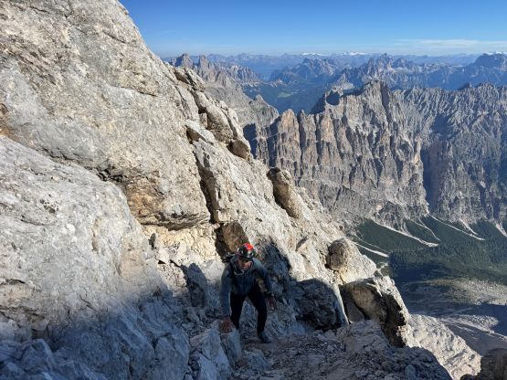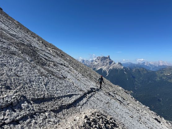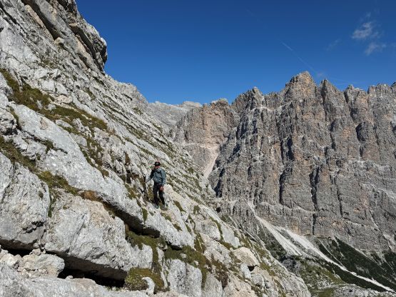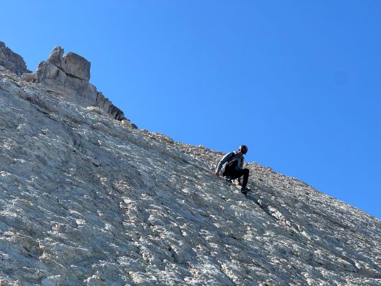 Giovanni on the typical slabby terrain on Antelao’s north ridge