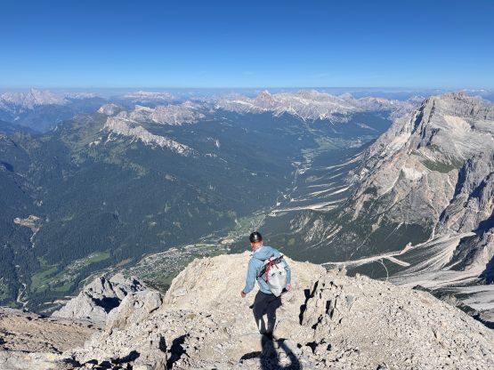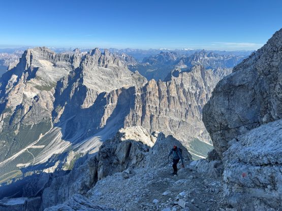 I caught some cell reception and informed Adam about my progress. Adam ended up switching the order of his objectives and went for Col Vicentin first before Tofana which was a tram-assisted “ascent”. If I pushed the descending pace then I would be waiting for Adam for many hours which I was not looking forward to, so I took a lengthy break on the summit soaking in the views. I also opted to descend together with Giovanni for simple reason of why-not. We again got confused a few times trying to descend the summit block but made a few backtracks and did a few of our own variations here and there. The slabs definitely required caution but wasn’t too bad. The ramps and ledges were also not too bad as the route-finding was much easier on the descent. It didn’t take us long to get off the difficult terrain. We then took a few long breaks including spending at least an hour in Rifugio Scotter in which Giovanni bought me some drinks. I then followed his lead down the trail and road system. My car-to-car time was 7 hours 14 minutes including all of the breaks so Antelao was really not that big of a deal. Giovanni gave me a ride down to the town of San Vito di Cadore where I walked around for some Italian experience. The most memorable observation was a car accident right in front of me. That accident caused a major traffic delay and not to my surprise, Adam got stuck in it. I walked north so save him from queueing in the traffic, and we resumed the northwards drive into Austria. I had already made the decision to do Hochkönig on the next day. I was definitely tired and I knew Hochkönig was one of the longer ones left on the itinerary, but we must take advantage of the good weather to get as many harder ones done right now as possible.