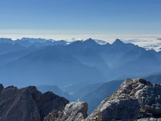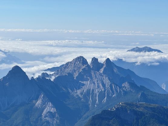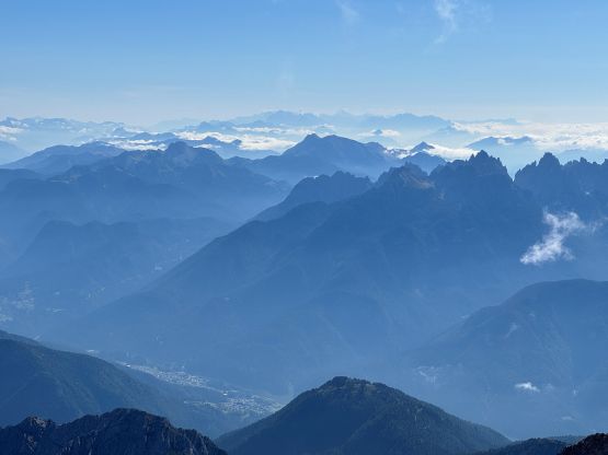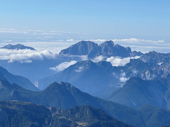 Monte Schiara with Monte Serva poking above the clouds on the far left