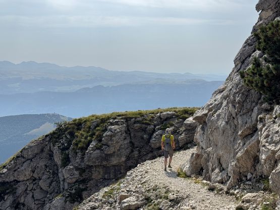 Cima Valdritta, also known as M. Baldo is one of the easiest ultra-prominent peaks in the Dolomites with the standard route only requiring ~700 m elevation gain and class 2 scrambling at the maximum. The peak overlooks Lago di Garda so the views are actually quite good. I had two thoughts about this objective when planning this extended Alps trip. The initial thought was to combine it with the nearby M. Bondone to make a twofer day, but I eventually opted to save it as a “low hanging fruit” when optimum weather and/or energy was lacking. This turned out to be the case immediately after completing 6 major Ultras in 6 days. I was downright tired and needed something to conserve energy for the bigger peaks coming up. There was plenty of time left in the day after finishing Cima Brenta so Adam and I drove down south into the city of Verona to find an apartment room to settle for the night. I was surprised that the receptionist (or the owner) spoke Chinese. The parking was more of a hassle unfortunately.