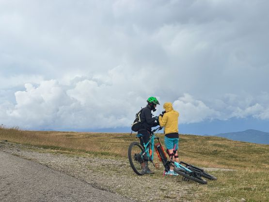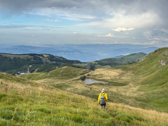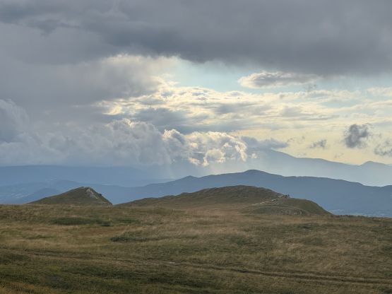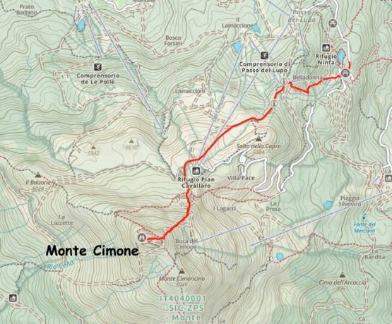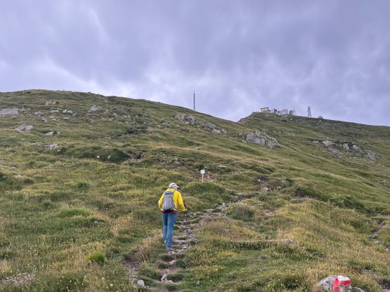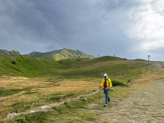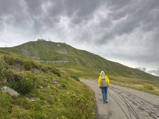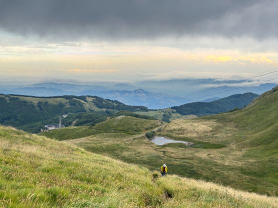There are several lifts on the lower flanks of this mountain but only the lowest one was in operation. This would still give us 200 m of benefit and the cost was only 5 EUR per person so why not. After exiting the lift we encountered some gusty head winds and we could definitely see some lightnings to the north, but it did seem like the storm was not moving towards us. We marched up following the ski resort’s roads and then took a short-cut trail towards Rifugio Pian Cavallaro. The rifugio was positioned on top of a P10m bump so we didn’t actually check it out, but it could be used as an emergency shelter if the storm did come our way.