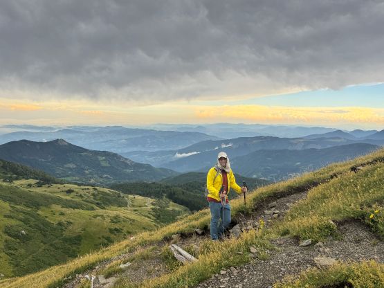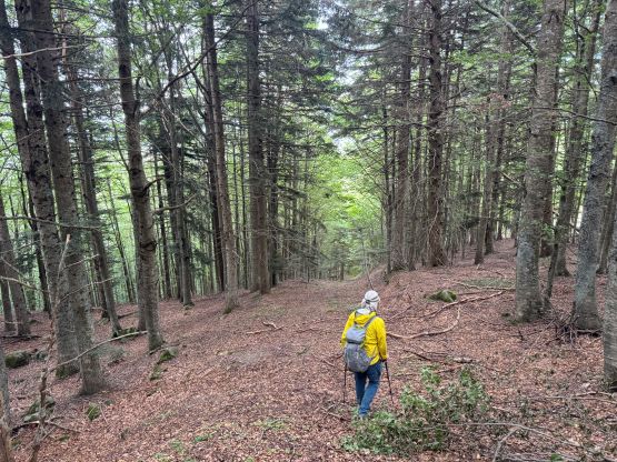 We still had over 300 m elevation gain left and Adam proposed that we should ignore the “standard route” and go for the shortest possible way, that was to ascend straight up the spine of the NE Ridge. I agreed as I could see trails on the ridge and also on my Gaia map. We had no idea why no one else took this route, at least according to the selected trip reports we had read on peakbagger.com. The trail was quite good albeit steep. I think our ascent time from the top of the chairlift to the summit was just under an hour and we stayed for at least 10 minutes up there soaking in the views. There were intense storms to the west and north but we were not in immediate threat.