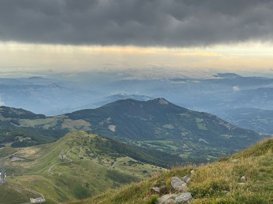 Monte Cimone is a standalone objective in the SW corner of Emilia-Romagna region of Italy and boasts over 1500 m prominence and 160 km isolation. This is not part of the Alps anymore but rather extends into Apennine Peninsula. Needless to say, the weather could be very different than the Alps. There’s some intense thunderstorms sweeping across the Alps on the 3rd day of this trip so we could either wait in the hotel and McDonalds to ride out the storms, or drive somewhere terribly far away to escape the system. Adam and I picked the latter. I spent at least an hour researching and checked various forecast models at least 50 times and eventually picked this “simple” Ultra, more than 6 hours of driving away. The gas and toll would be ridiculously expensive in Italy but least I wasn’t going to pull the mileage into my own vehicle, so who cares. The weather was also not that great down there but all models agreed with some chances of sunshine in the evening hours.