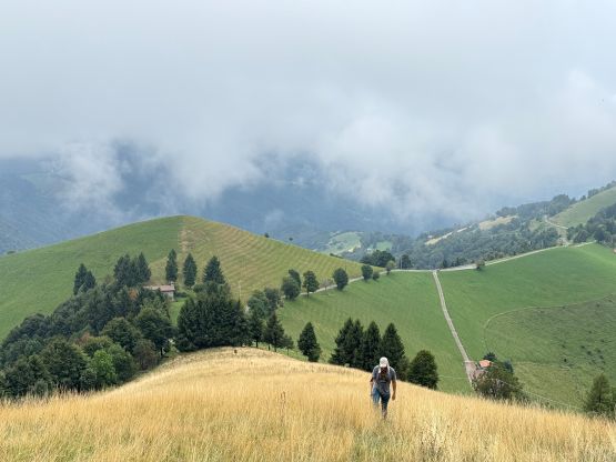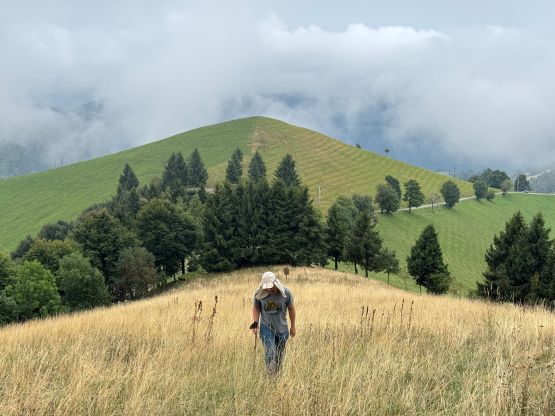 I had opted to ignore the weather forecast on this day as the morning was sunny but the forecasts were calling for rain. I immediately started the 2-hour drive eastwards through the city of Bergamo. We did make one stop for food and gas, but elsewise we didn’t actually have that much extra time to waste. The drive to the “trail-head” was more of an adventure than the hike itself, which is usually the case for these no-brainer prominent peaks. To climb a P1000m “Ribu” one has to gain at least 1000 m elevation, and in the case when the hike is short, the elevation gain must be dispatched by driving. Google Map, being an American app, knows absolutely nothing about the smaller roads on this mountain and falsely directed me onto some sketchy and narrow dirt roads. Turning around was difficult but I made work by doing a 10-point turn. I then turned on the Gaia and satellite maps and we indeed found the right way, but this road was apparently private. Nevertheless Adam and I loved trespassing so we ignored the private sign and drove to the upper end at “Il Colletto” marked on the Gaia map.
