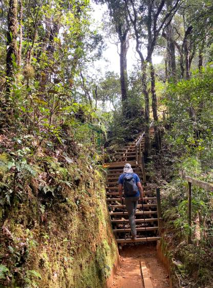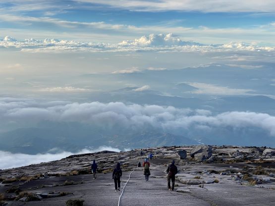 I eventually decided to descend and I mostly jogged down the slabs. The trekking poles would not be very helpful on the smooth slabs so I stored one of them inside my pack and carried the other one. The guide had already gone down but was waiting for me at the checkpoint, and I caught up to Adam about 100 m from the guesthouse. We went straight back into the guesthouse and the highlight was again, their food. The buffet breakfast was plenty enough for us. Adam was keen to descend but we were told that the earliest bus to drive us back to Kota Kinabalu would not leave until 1 pm, so what’s the point in rushing. I decided to sleep a couple hours in the guesthouse as I’d rather be lying down than sitting, but by 9:30 am I could no longer sleep anymore due to the noises created by the other climbers. I quickly got up and dashed the 1400-m descent with the guide, in a single shot without any break. I got down in 1 hour 25 minutes and my round trip time was just over 8 hours excluding time spent in the hut, but including the hour-long summit stay. I think this peak is totally doable as a day-trip but the park’s regulation makes it difficult if not impossible, and certainly not very worthy as summitting at midday would almost guarantee to be in the clouds with no view. The company had been extremely helpful that they ended up finding a vehicle at 12:20 pm. I was not anticipating that due to the rigidity in this country so that was a pleasant surprise. In the end despite the over-price I would still recommend this company due to the ability of their guides and the willingness to customize based on our own needs. By comparison most climbers ended up not showing up at the park’s gate until 4-5 pm which would be 6 hours later than our time.