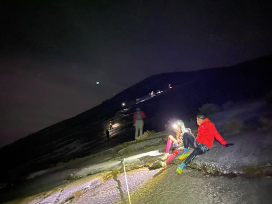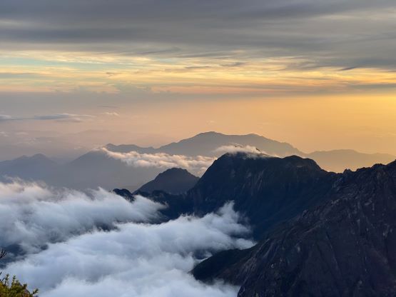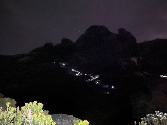 The other two woke up at 1:30 am to be ready to leave at 2:30 am, and that’s the time when everyone else would leave. We had communicated with the guide in the previous day that we wanted to leave later, and the agreement was 3:30 am. I would have called 4 am or even later, but the officials at the uppermost checkpoint would turn around anyone that hadn’t shown up at 5:30 am and we didn’t want to take any risk on that. It turned out that we were way earlier for that deadline and by that checkpoint we had already passed half of the gang ahead. Above the checkpoint the route traverses onto the endless granite slabs and a juicy rope had been fixed all the way to the summit. The terrain was mostly class 1 but the rope served nicely as a guideline in the dark. Adam and I on-purposely slowed down to the maximum possible extent as we sensed that we’d be summitting another important mountain in the dark, but we still ended up summitting in the dark about 1 hour before sunrise. There were several groups ahead of us and they opted to wait for the sunrise, so we would do the same. The only difference was that we didn’t bring enough warm layers. After about 20 minutes Adam gave up on the sunrise and went back down, but I managed to shiver through another half an hour until the show’s over. The correct starting time for us should be 4:30 am, 2 hours after the gang’s left. It’s also worth noting that the true summit boulder lies outside the fenced area behind the summit congratulation sign. I hopped over the fence to stand on the highest ground, but within a minute the guides (even from the different groups) forced me to go back in.