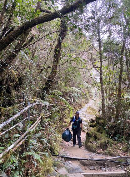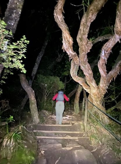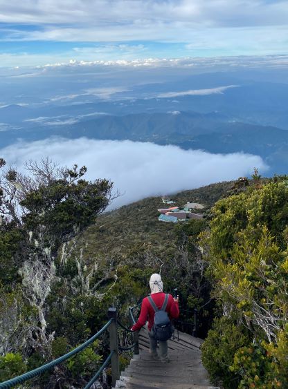 I eventually decided to descend and I mostly jogged down the slabs. The trekking poles would not be very helpful on the smooth slabs so I stored one of them inside my pack and carried the other one. The guide had already gone down but was waiting for me at the checkpoint, and I caught up to Adam about 100 m from the guesthouse. We went straight back into the guesthouse and the highlight was again, their food. The buffet breakfast was plenty enough for us. Adam was keen to descend but we were told that the earliest bus to drive us back to Kota Kinabalu would not leave until 1 pm, so what’s the point in rushing. I decided to sleep a couple hours in the guesthouse as I’d rather be lying down than sitting, but by 9:30 am I could no longer sleep anymore due to the noises created by the other climbers. I quickly got up and dashed the 1400-m descent with the guide, in a single shot without any break. I got down in 1 hour 25 minutes and my round trip time was just over 8 hours excluding time spent in the hut, but including the hour-long summit stay. I think this peak is totally doable as a day-trip but the park’s regulation makes it difficult if not impossible, and certainly not very worthy as summitting at midday would almost guarantee to be in the clouds with no view. The company had been extremely helpful that they ended up finding a vehicle at 12:20 pm. I was not anticipating that due to the rigidity in this country so that was a pleasant surprise. In the end despite the over-price I would still recommend this company due to the ability of their guides and the willingness to customize based on our own needs. By comparison most climbers ended up not showing up at the park’s gate until 4-5 pm which would be 6 hours later than our time.