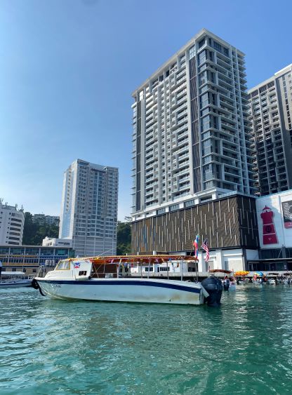 The simplest way to get onto Pulau Gaya is by boat from Jesselton Point Ferry Terminal in downtown Kota Kinabalu and to get there I only needed to take a taxi using Grab app. Adam was not interested in this hill as it’s likely to be more involved than anticipated. After a worthy buffet breakfast I left the hotel at 8 am and got to the ferry terminal 20 minutes later. The ferry was decently cheap (35 MYR round trip), but the schedule was not very desirable. Firstly they said the boat would not depart until it’s full so I had to wait for at least an hour at the terminal, but then they came back saying I could take the other boat departing for Sapi Island. These two islands are very close to each other so the boat could drop me off on Gaya Island afterwards. This might seem great but not quite. The problem was the return that the first boat would not leave Gaya Island until 1 pm so I was looking at several hours of waiting no matter what. Nonetheless I accepted their offer to get me onto the island an hour earlier. There’s likely more things to do there than at the chaotic Jesselton Point Terminal. The boat was rather small (maximum 10 passengers) and the ride was extremely fast, that at times we were flying a meter above the waves. My asses were still hurting from the bumpy rides. Thankfully the ride was done in 20 minutes. As expected, everyone else got off onto Sapi Island.