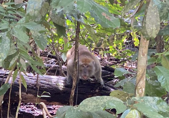 It’s worth noting that there are quite a few spots on this island where a passenger boat can park, but some of them are privately owned by resorts. The most popular beach is Police Beach but without a reservation you cannot take a boat there. The only option for me as a walk-on passenger was Padang Point and this spot is farther from the high point than Police Beach or the “base camp”. I was then looking at a round trip distance of 8 km, which might not be a bad thing because my flexibility was limited by that 1 pm return time anyway. I was supposed to pay an additional 25 MYR upon arrival as this island is technically in Tunku Abdul Rahman National Park, but I skipped it as nobody asked me to do anything. Instead of lingering at the beach I immediately dived into the forest. The heat was brutal and so was the humidity, that within 5 minutes I had to take my shirt off. I did wear long pants with leech socks as I anticipated a lot of leeches on this island, but in the end I did not find any. I was sweating like a pig even without wearing a shirt, and I had to hike at an extremely slow pace to not overheat myself. There are some up-and-downs but the trail quality was overall “acceptable”. The branch leaving for the true summit was unsigned and difficult to find without a GPX track. I searched around for a few minutes and decided to just bushwhack onto the ridge, and found the trail there. The rest of the way to the high point was straightforward but the final section was steep with a fixed rope “handrail”.
