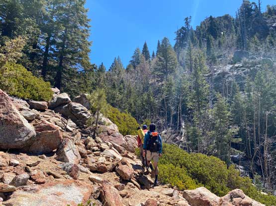 We still had at least 3 hours of drive in the following morning, so opted to wake up at 5 am again. The drive northwards along the coastline wasn’t too bad, but the windy roads into the National Park took a while. The checkpoint at the gate was interesting. They wanted to record our exact itinerary, which was understandable, but they also wanted to take a picture of the treads of our shoes, which was kind of weird. The last few kilometers to the trail-head was finally on a dirt road and we were quite glad to have a Subaru Forester, as some ruts were definitely not “car terrain”. We eventually made to the trail-head at around 10 am where another party with British Columbia licence plate was also gearing up. They were rock climbers to climb the connecting ridge (reportedly 5.8 or something) between Cerro Botella Azul and Picacho del Diablo and also over 3 days so there’s a decent chance we might end up seeing each other again on the trail. I had previously looked at that ridge. It was tempting as an option to avoid the 1000-m descent into the valley but the “beta” was sketchy and insufficient to say the least. After wishing them luck Doug, Arthur and I eventually took off at around 10:40 am, sticking to our own agenda.