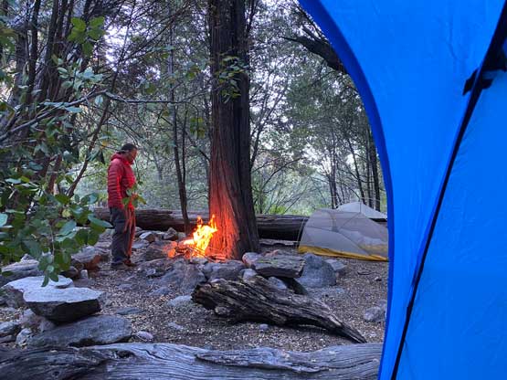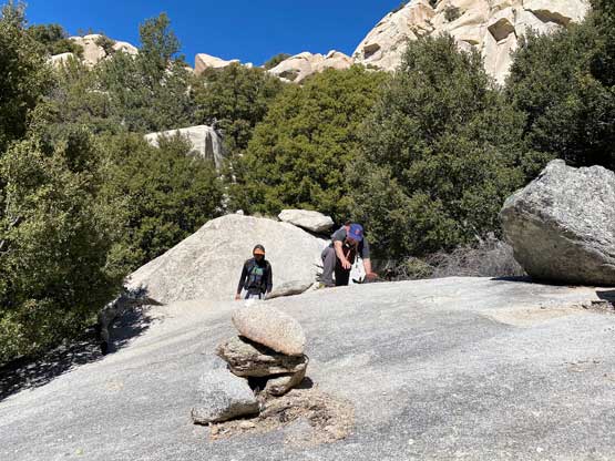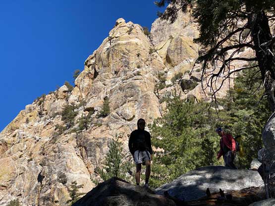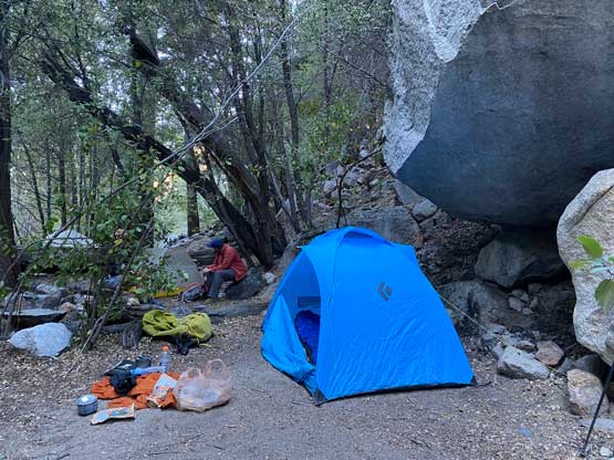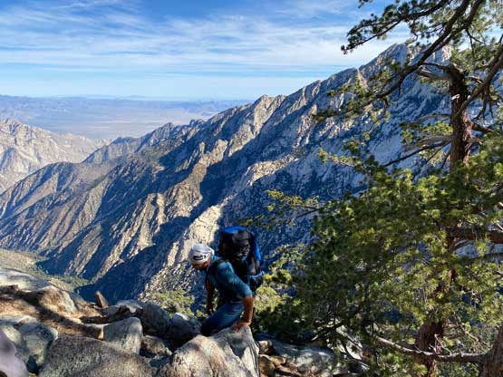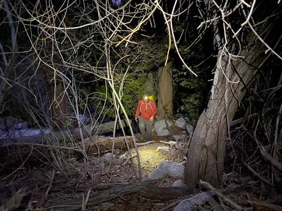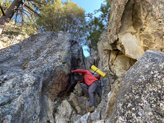We found fresh snow on the north side of the “Blue Bottle col” but the amount of the snow was not concerning. The snow condition was also more interior-like meaning that they weren’t forming sheets of ice. We all brought microspikes after seeing fresh snow on the ground but they turned out to become training weight. We had downloaded a few sets of GPS tracks and had read the description thoroughly before coming down to Mexico and the general consensus for the next short while was to “traverse high and far before making a descent into the valley”. The route-finding was easier than we thought because there was already a trail developed. The trail was quite easy to follow and by sticking to this trail we ended up mostly tracing Connor McEntee’s GPX track. A while later after losing 300 m elevation we finally made to the point that we could simply just dash down into the valley. The terrain was mostly on boulders but there were also game trails, cairns and flagging here and there to facilitate the navigation. The crux of this descent came rather sooner where we must down-climb into a short chimney. I would classify this step as “class 4” but without much exposure. Arthur, being a much better rock climber, didn’t even bother to search for the easiest route and simply down-climbed a 5th class route in the gully’s constraint. Eventually a few valleys/gullies converged at around 2050 m elevation and the underground water had come to the surface. The rest of the descent to Camp Norte at 1920 m elevation was again, mostly on boulders and easy-to-follow trails. We made to the camp with a few hours of spare daylight but were too spent to do anything. The goal for this night was to simply take a much-needed rest.