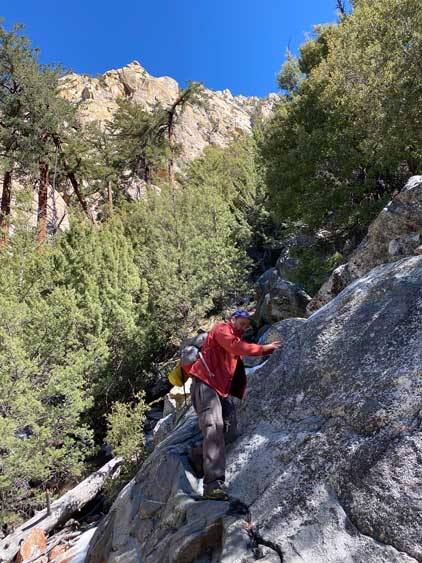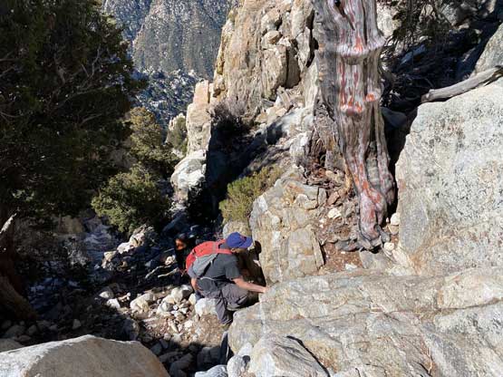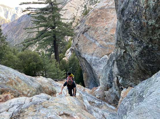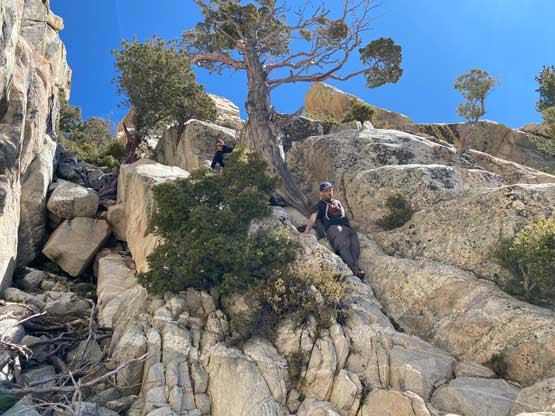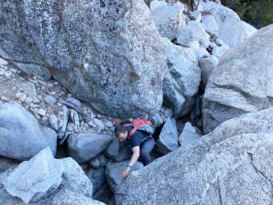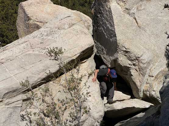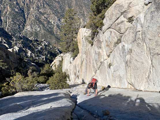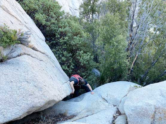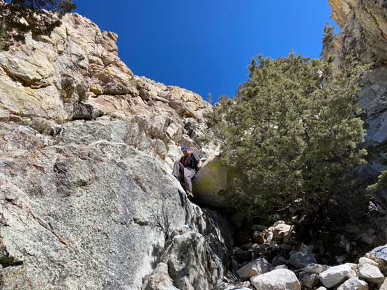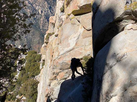 Crawling down the 3rd class ramp to bypass that impassible chockstone