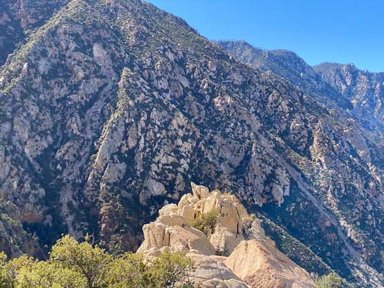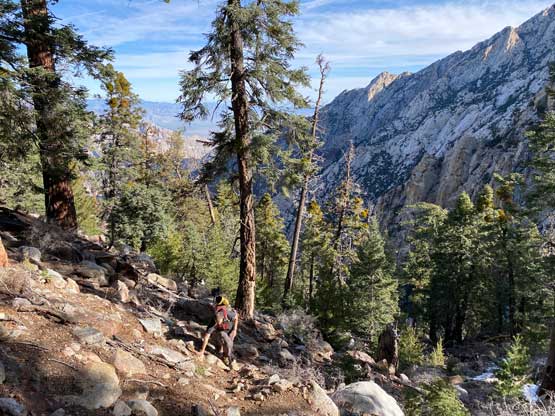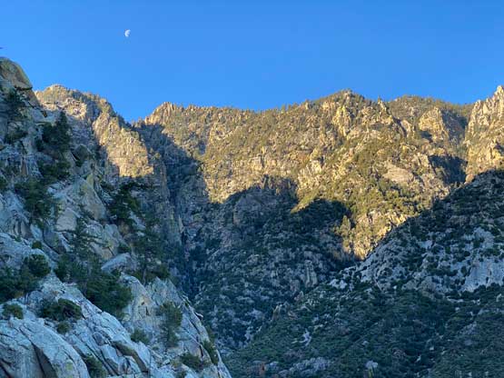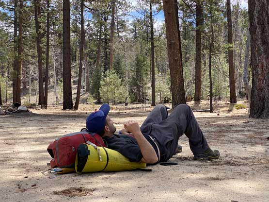 The first stage of the trip was about 8 km of boring plod to “Blue Bottle col” in which there wasn’t much else to see other than trees and dirt. Again I opted to listen to music the whole way to kill time. Doug and Arthur had set a steady pace so we eventually got there in 2.5 hours after leaving the vehicle. We dumped the backpacks and went for a short stroll to check out the summit of Cerro Botella Azul, or “Blue Bottle Peak”. This detour only required 50 m elevation gain but the reward was substantial. First of all Cerro Botella Azul is a ranked peak (peak with 100 m or more prominence) but for the most important the view of Picacho del Diablo was quite decent. This peak can also serve as a fine objective for hikers without scrambling and backpacking experience.