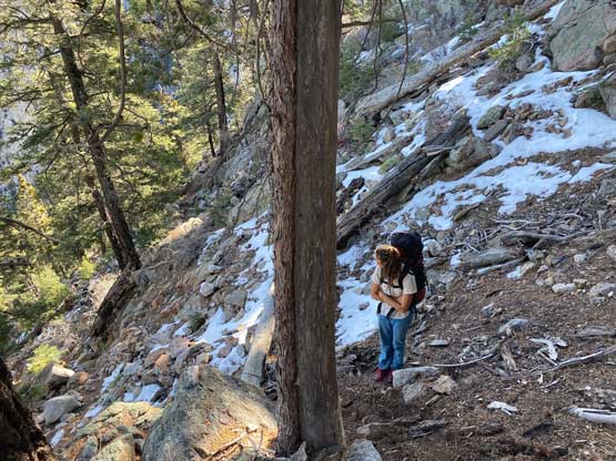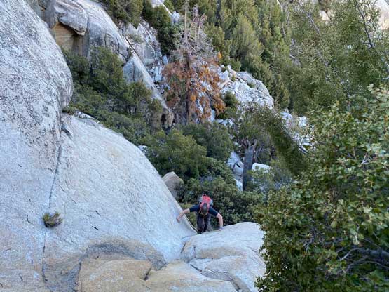 This exposed ledge traverse was a little off-route, but worked out nonetheless