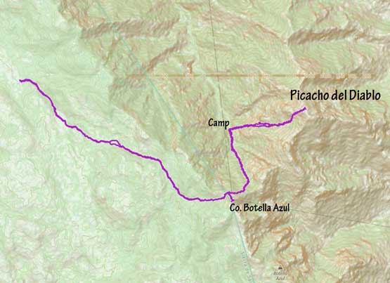 Picacho del Diablo and Cerro Botella Azul standard route. GPX DL