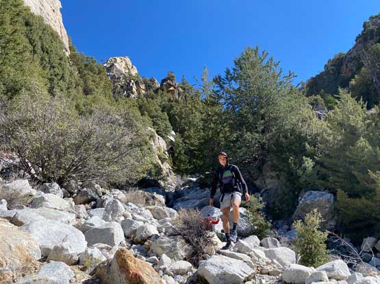 We found fresh snow on the north side of the “Blue Bottle col” but the amount of the snow was not concerning. The snow condition was also more interior-like meaning that they weren’t forming sheets of ice. We all brought microspikes after seeing fresh snow on the ground but they turned out to become training weight. We had downloaded a few sets of GPS tracks and had read the description thoroughly before coming down to Mexico and the general consensus for the next short while was to “traverse high and far before making a descent into the valley”. The route-finding was easier than we thought because there was already a trail developed. The trail was quite easy to follow and by sticking to this trail we ended up mostly tracing Connor McEntee’s GPX track. A while later after losing 300 m elevation we finally made to the point that we could simply just dash down into the valley. The terrain was mostly on boulders but there were also game trails, cairns and flagging here and there to facilitate the navigation. The crux of this descent came rather sooner where we must down-climb into a short chimney. I would classify this step as “class 4” but without much exposure. Arthur, being a much better rock climber, didn’t even bother to search for the easiest route and simply down-climbed a 5th class route in the gully’s constraint. Eventually a few valleys/gullies converged at around 2050 m elevation and the underground water had come to the surface. The rest of the descent to Camp Norte at 1920 m elevation was again, mostly on boulders and easy-to-follow trails. We made to the camp with a few hours of spare daylight but were too spent to do anything. The goal for this night was to simply take a much-needed rest.