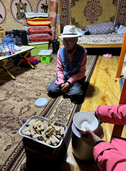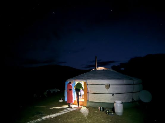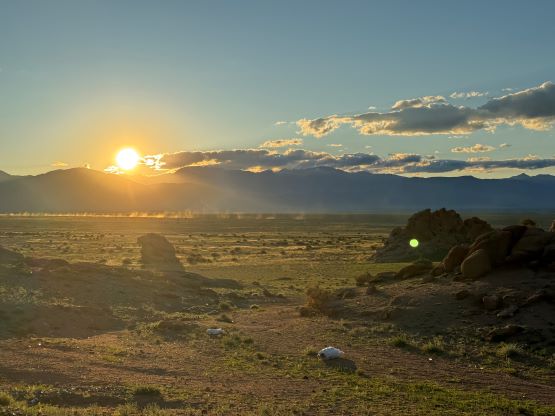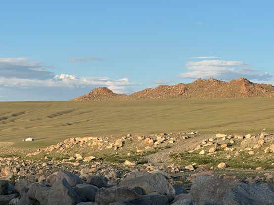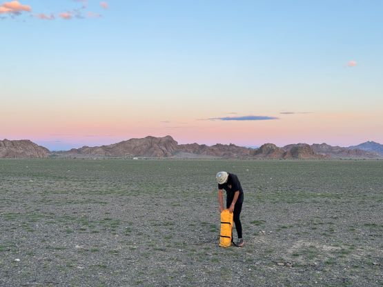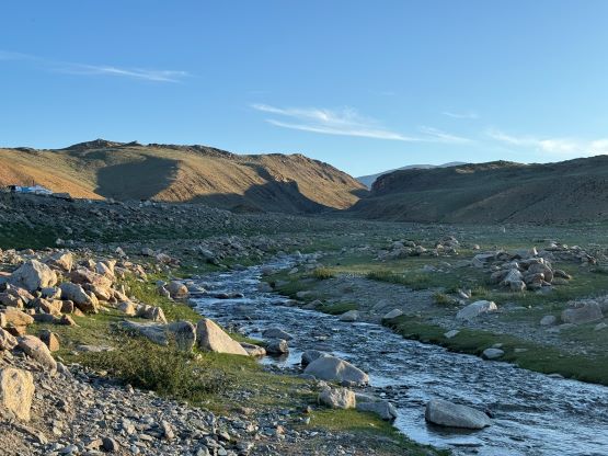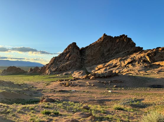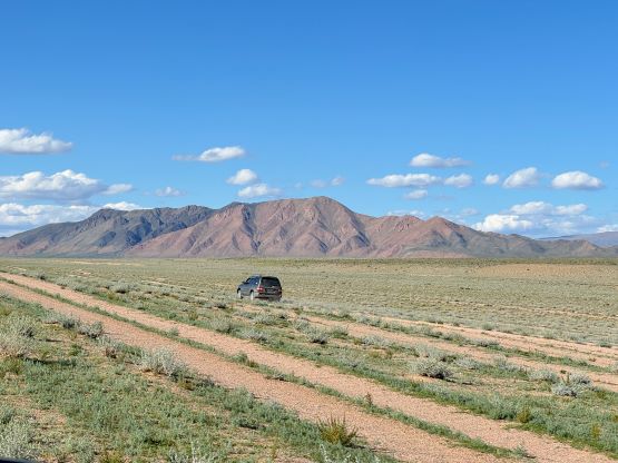 This is one of those peaks that the driving is much harder than the hiking. Right off the bat after leaving Umnugovi we encountered a maze of roads heading south. It might seem like those were just multiple lanes of the same road but they weren’t. After zooming in on the satellite images I directed the driver to cut sharply leftwards. We crossed at least 5 lanes before merging onto what seemed like the “main road” on the Gaia map. We then followed this road southwards for a long while. At one point we were supposed to make a hard left turn and it was here that our climbing guide (who’s in a separate vehicle) decided to take a different way. There’s a big disagreement in whether we should follow the GPS technology or the local knowledge and in the end, both were correct. I insisted on following the GPS so the other vehicle eventually came to join us, and we took the guide’s route a day later on the return. That’s one problem when you have “too much” experience in one group. Usually I’m the only person making decisions but we had at least 4 people in this team willing to and capable of making calls. The two routes merge at a concrete bridge and after that, we made some gradual ascents to a local village underneath the peak. After some discussion we decided to drive down to that village and camp and make friends with the locals, and we promised them that we were only there to pray.