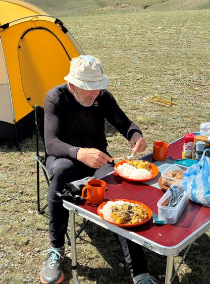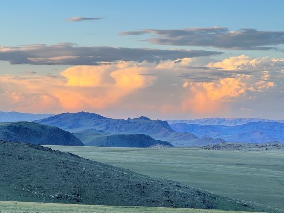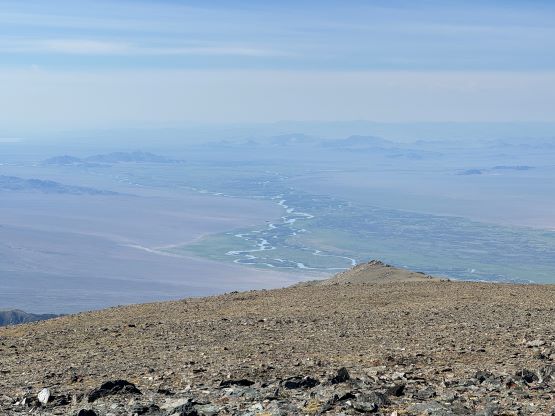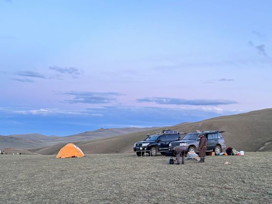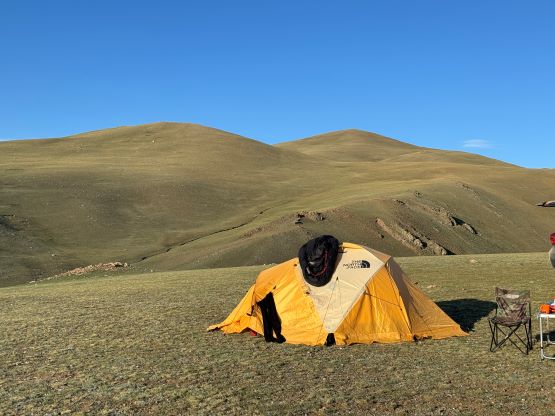 We didn’t linger too long up there as the views weren’t going to change by much. I noticed that after getting back onto those south-facing traverses the guide had slowed down significantly. I thought he was just taking his time enjoying the views, but by the time we got back to the 2800-m saddle he informed me (in broken English) that the walkie-talkie was lost somewhere and he was looking for it. Our suspect was that the radio was lost on the summit and I personally wouldn’t give a shit about losing a radio, but it seemed like a big deal for this guide. The decision was made that he would go back up to the summit and thereafter Petter and I would have to walk back to the base camp to inform the rest of the team what was happening. This resulted in 4 extra kilometers of walking and 2.5 hours of time lost, but sometimes that’s just part of an expedition. The driver eventually drove back to the saddle to pick up the guide and we managed to eventually depart after lunch. The rest of the day was spent driving NW across several villages on mostly rough and bumpy roads to Nogoonnuur to position ourselves better for Turgen Uul on the following days. To my surprise there was actually fairly good reception on the first half of the drive, but not on the second part until reaching Nogoonnuur. We drove past that town and found some flats to set up camp at dusk, and the mosquitoes were quite horrendous.