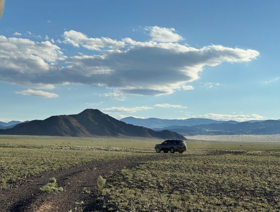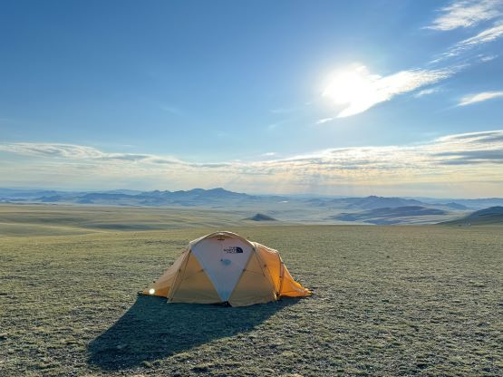 We didn’t linger too long up there as the views weren’t going to change by much. I noticed that after getting back onto those south-facing traverses the guide had slowed down significantly. I thought he was just taking his time enjoying the views, but by the time we got back to the 2800-m saddle he informed me (in broken English) that the walkie-talkie was lost somewhere and he was looking for it. Our suspect was that the radio was lost on the summit and I personally wouldn’t give a shit about losing a radio, but it seemed like a big deal for this guide. The decision was made that he would go back up to the summit and thereafter Petter and I would have to walk back to the base camp to inform the rest of the team what was happening. This resulted in 4 extra kilometers of walking and 2.5 hours of time lost, but sometimes that’s just part of an expedition. The driver eventually drove back to the saddle to pick up the guide and we managed to eventually depart after lunch. The rest of the day was spent driving NW across several villages on mostly rough and bumpy roads to Nogoonnuur to position ourselves better for Turgen Uul on the following days. To my surprise there was actually fairly good reception on the first half of the drive, but not on the second part until reaching Nogoonnuur. We drove past that town and found some flats to set up camp at dusk, and the mosquitoes were quite horrendous.