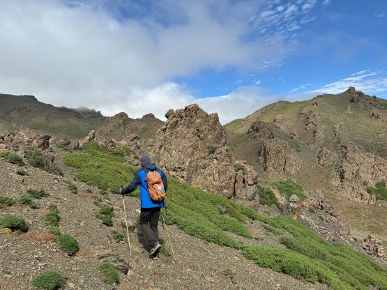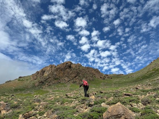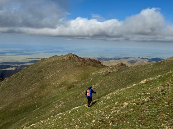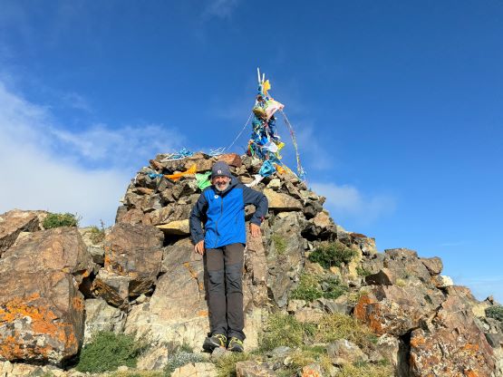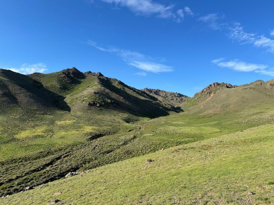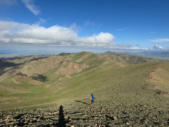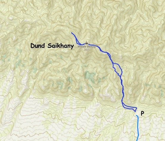 Again I didn’t take Devidas and Rob’s “beta” for granted and went back to the maps. I had proposed an attack from the SW that offers the least amount of hiking, but such would involve driving a longer distance on unpaved roads. I was actually planning to direct our driver towards that way but the reality didn’t quite match what I’d seen on the satellite images, probably due to the images being old. The satellite images didn’t even fully show the paved highway so we missed a critical turn. That’s okay as we would then take Rob and Deividas’ route from the SE. Gangaa and Manlai would be happy about this decision because we were maximizing the driving distance on this paved highway. Rob’s GPX track was mostly correct but we opted to take a variation near the end, by driving up a paralleling gulch further to the east. This would give us a higher starting point and we surely had no issues driving all the way to 2350 m elevation. The problem was then we were positioned a few kilometers to the east of the route. Thankfully our skillful and determined drivers were able to drove us at least 2 km westwards by crossing several troublesome gullies, so now we had parked ourselves much closer than Rob and Deividas’ starting point, from both elevation and distance perspectives.